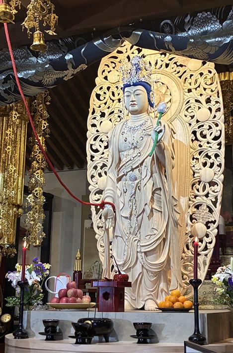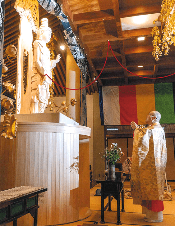 四天王寺(三重)令和の大観音開眼法要が厳修──新坐禅堂「玄いとばり」開堂 2026.02.22 ニュース 2026年2月22日、曹洞宗・塔世山四天王寺(三重県津市)において、「令和の大観音」開眼法要が厳修され、当協会もご招待を賜り参列いたしました。 本観音像の建立は、聖徳太子御聖忌1400年を契機として発願されたもので、2021年2月より開始されたオリジナル御朱印の頒布を通じ、全国で約11万枚が授与されました。その浄財が造像費に充てられ、多くの参拝者の祈りが結実した事業となっています。 今回開眼された「令和の大観音」は、総高約4メートル(像高約2メートル)の尊像であり、本法要は青山俊董老師(大本山總持寺西堂/尼僧として初めて曹洞宗法階「大教師」に補任)を導師として執り行われました。 また同日、特別坐禅堂「玄(くろ)いとばり」が開堂されました。本堂は写真家・浅田政志氏のプロデュースによるもので、闇と光を主題とした空間の中、インド・ブッダガヤの菩提樹の写真に囲まれた静謐な修行環境が整えられています。 このたびの開眼法要および一連の取り組みを通じ、四天王寺住職・倉島隆行師の継続的かつ実行力ある活動に、深い敬意と強い感銘を受けました。